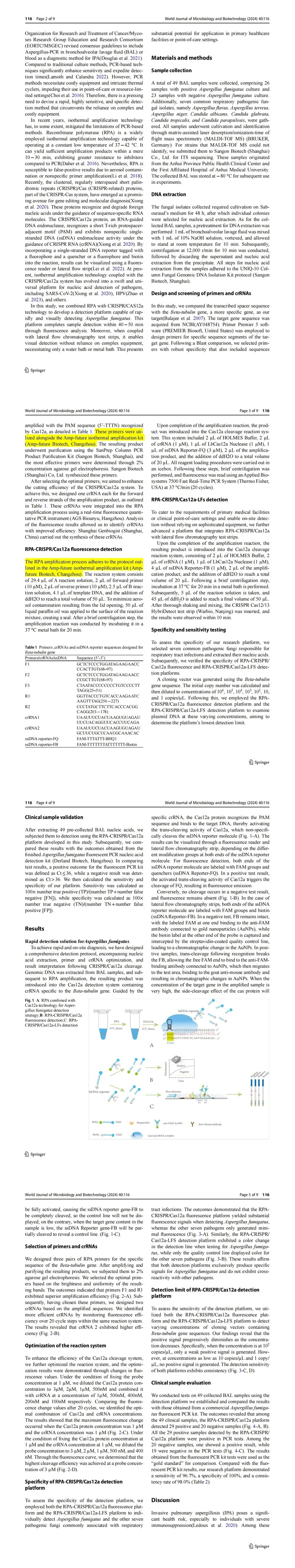 Establishing a pulmonary aspergillus fumigatus infection diagnostic platform based on RPA-CRISPR-Cas12a